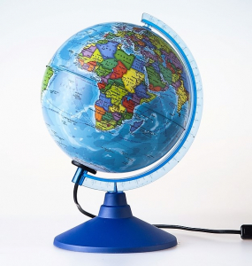 Работает от сети, материал пластик, подсветка. Масштаб 1:84 000 000
